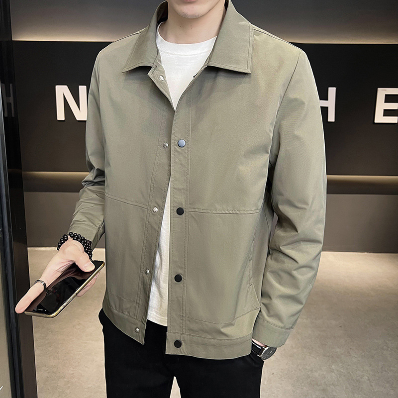 立襟ジャケット男性春秋カジュアルスーツ青年秋服大ポケット純色百合軽熟コート
