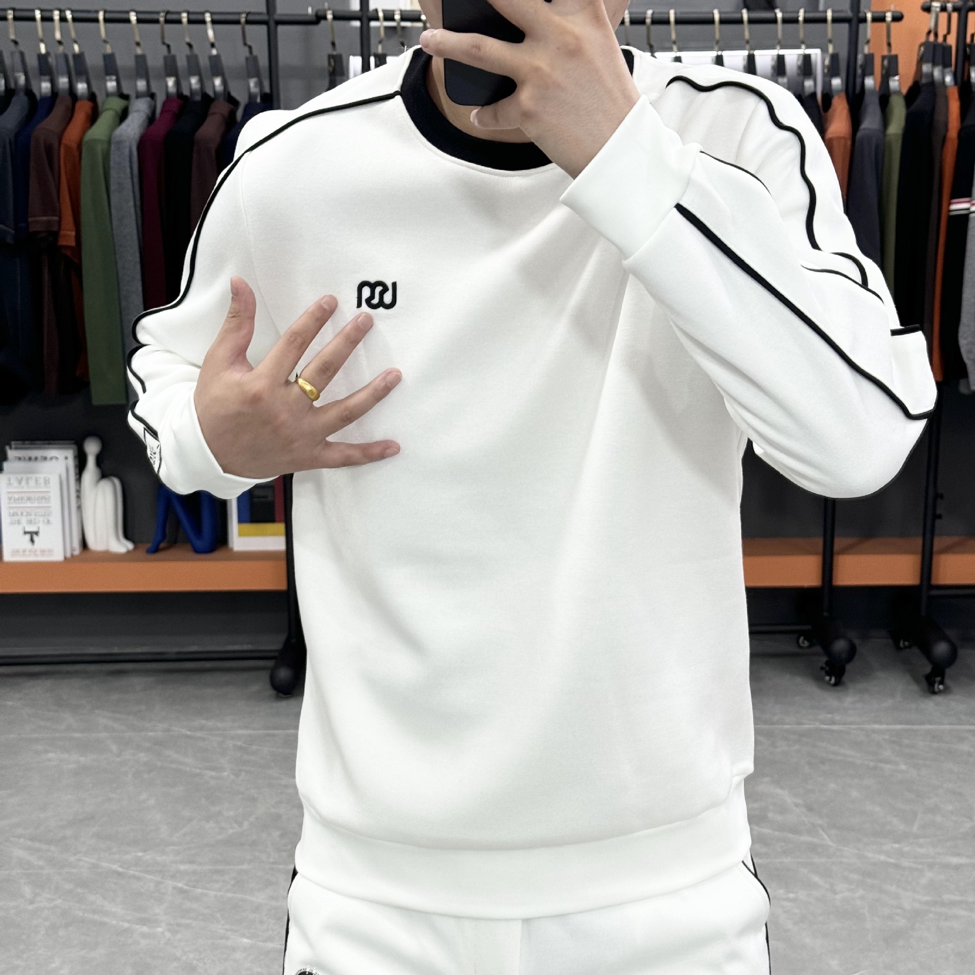 2024秋の新しい丸首のパーカーの男性のファッションファッションカジュアルなストライプの長袖tシャツのファッションブランドの男性服