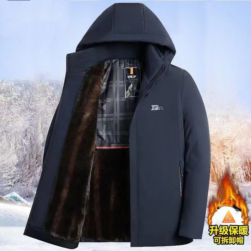 冬の男性のベルベットはビジネス綿の服を厚くして、父の綿服の中高年の父のゆるいカジュアルな保温綿入れを着ている