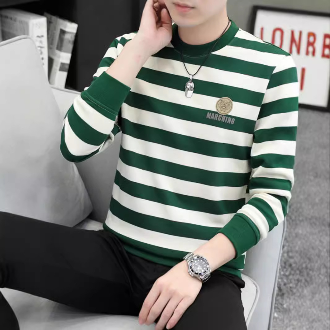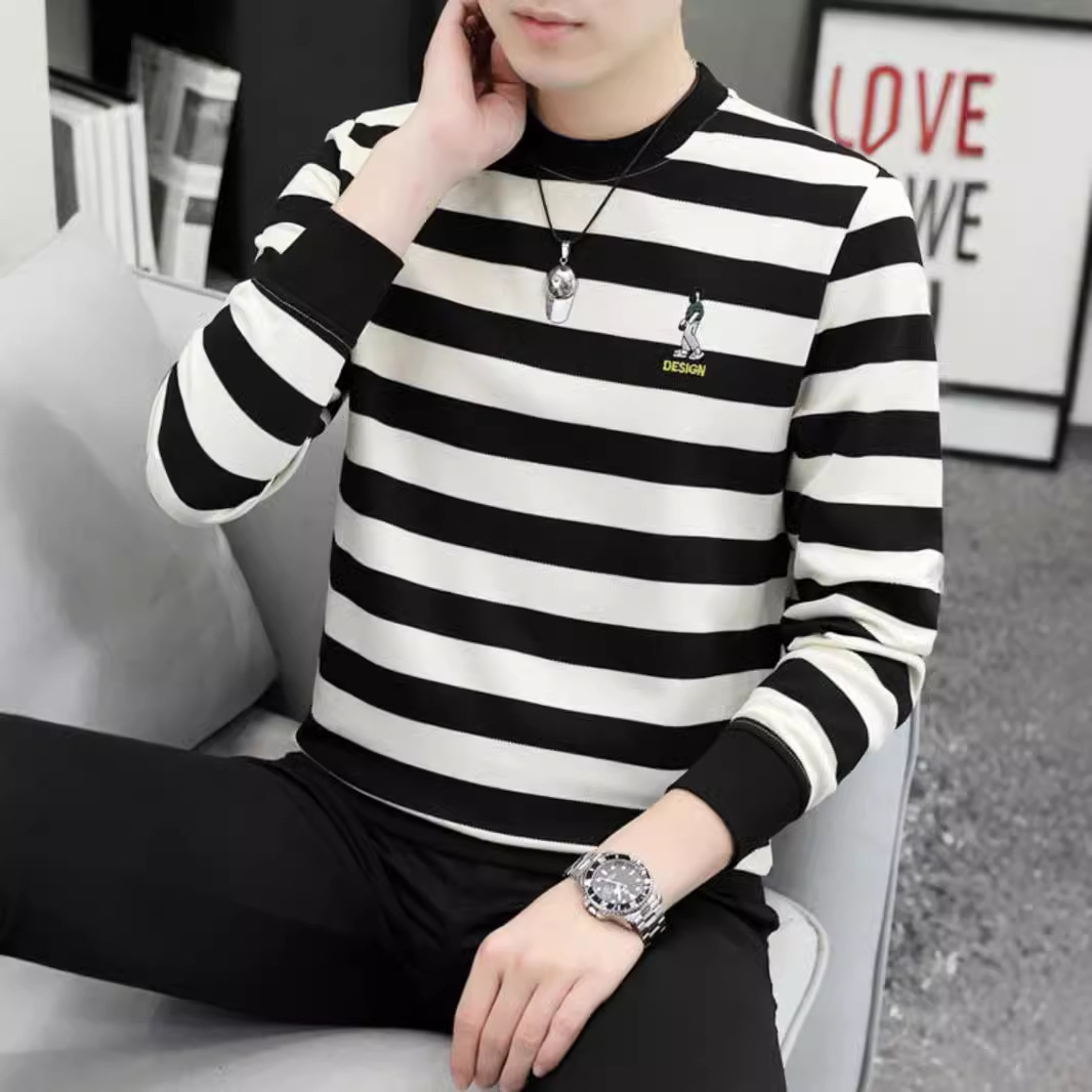 丸首のパーカーの男性のファッションファッションのカジュアルなストライプのシンプルな帽子のない長袖のtシャツの底のシャツの男性の上着