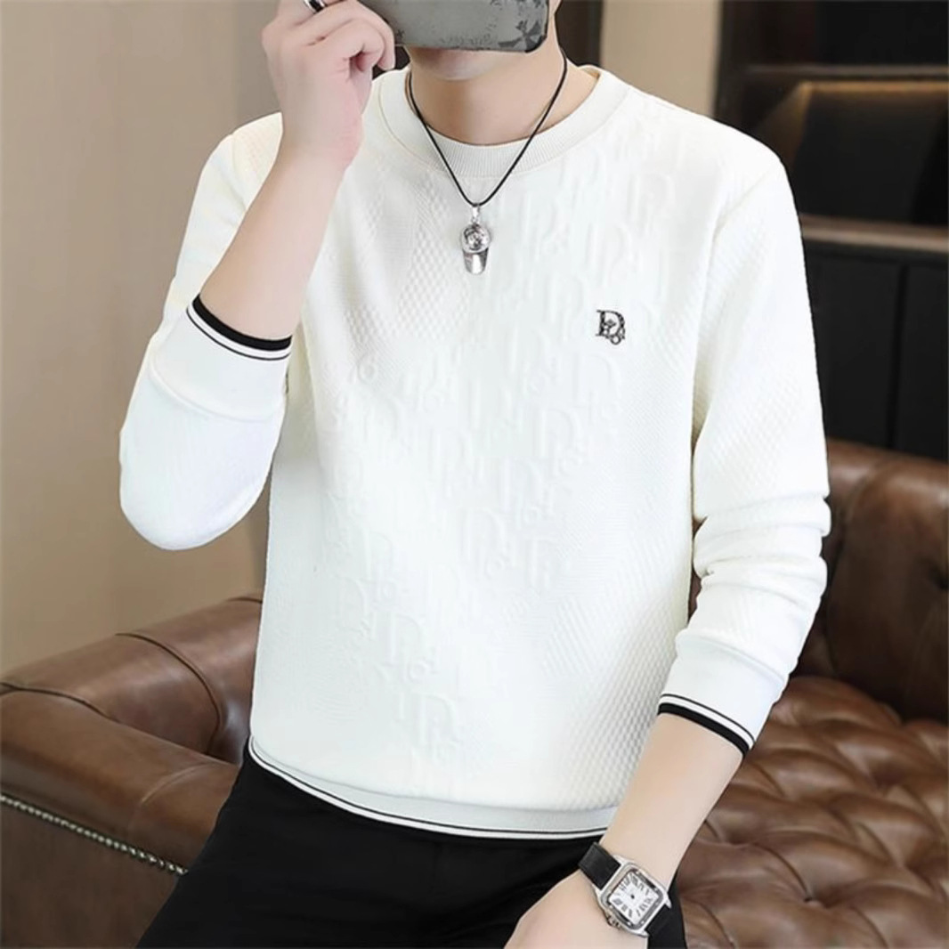 丸首の衛衣の男性の2024秋冬の金のベルベットの高品質の潮流とベルベットの厚い長袖のtシャツの底のシャツ