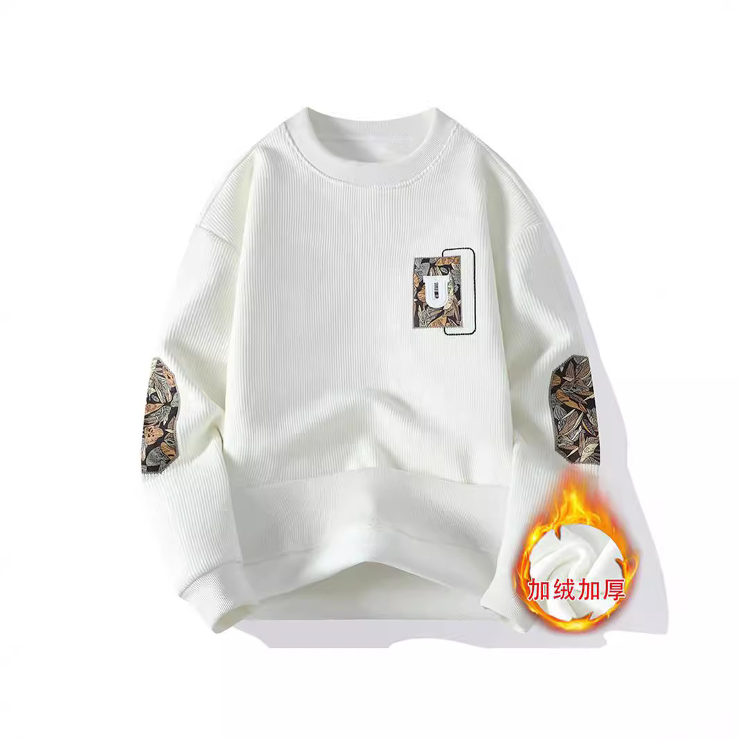 2024新型の個性に合わせて秋の冬にベルベットをつけて、男性のベルベットの刺繍丸首長袖tシャツのシャツを厚くします