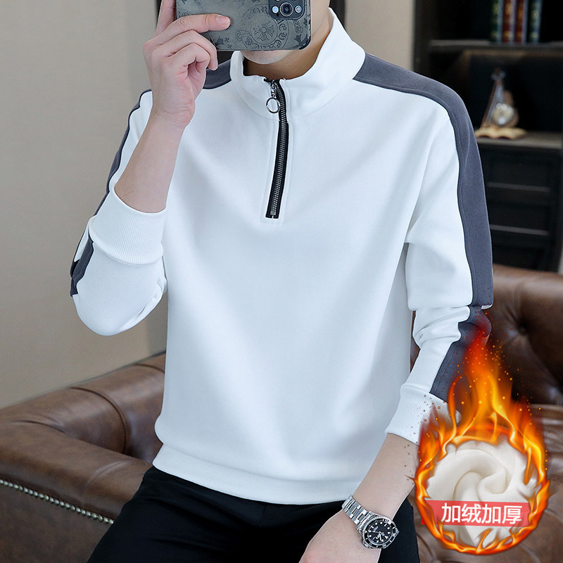 半ファスナー衛衣男2024秋冬加毛厚金立襟長袖tシャツカジュアルゆるい底シャツ男保温