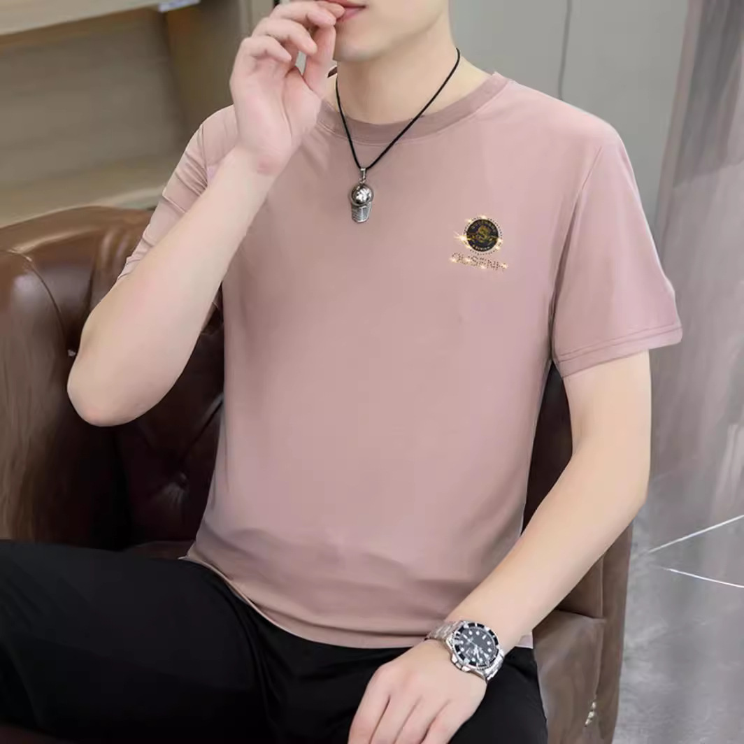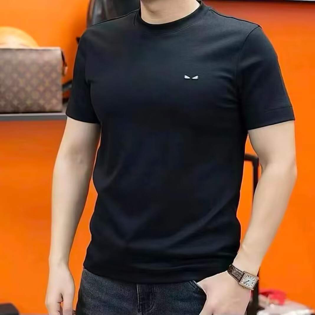 2025年夏新作メンズ半袖Tシャツラウンドネックアイスシルク高級Tシャツスリムフィット半袖トップスメンズヨーロッパTシャツ