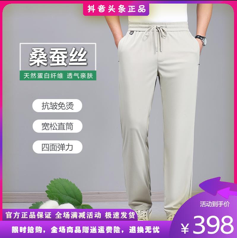 绢糸ハイエンドカジュアルパンツ男性夏の薄いクール感カジュアルパンツの弾力性がゆったりしています。