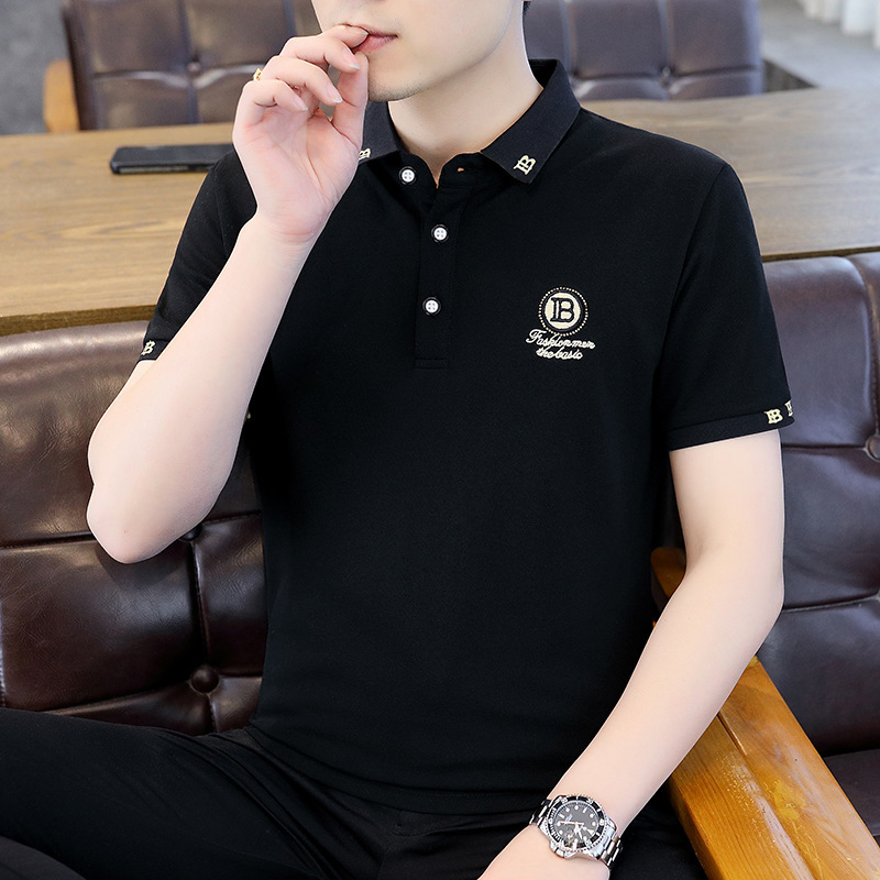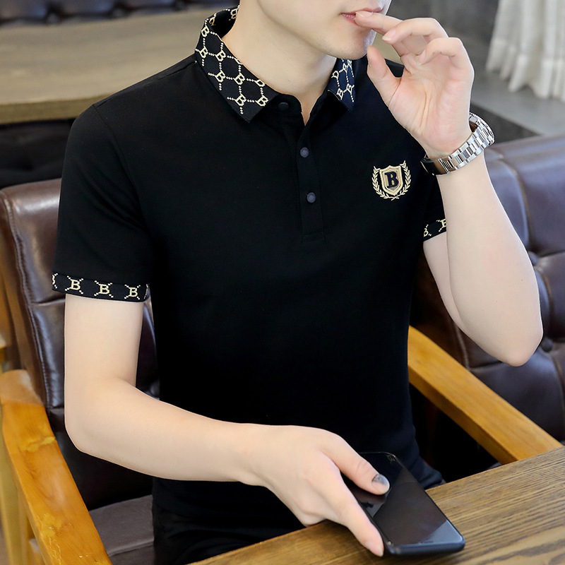 2024夏新作メンズポロシャツ高级感カジュアルファッションスリム襟付きメンズ半袖ポロシャツ男