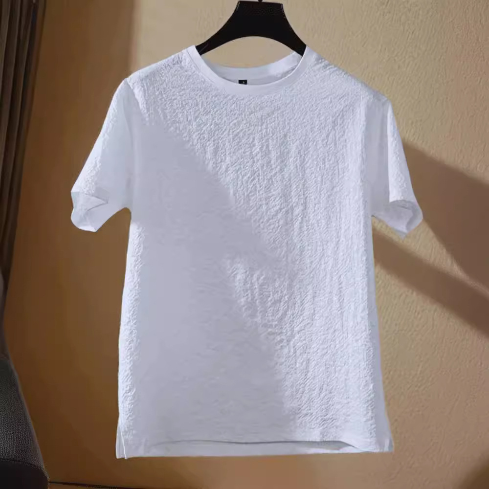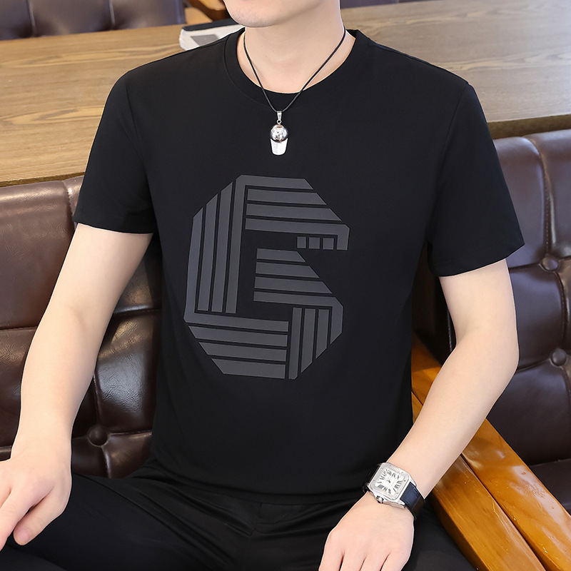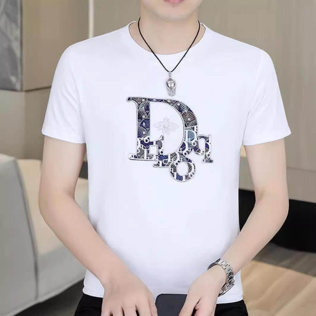 2024夏の新型半袖tシャツ男性丸襟ジャカード半袖中青年シンプルカジュアルシャツ