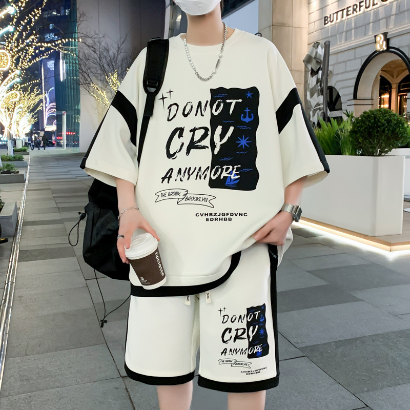 ヒップホップカジュアルスポーツスーツ男性夏かっこいいゆるい大きいサイズショートパンツ半袖tシャツ青少年2点セット