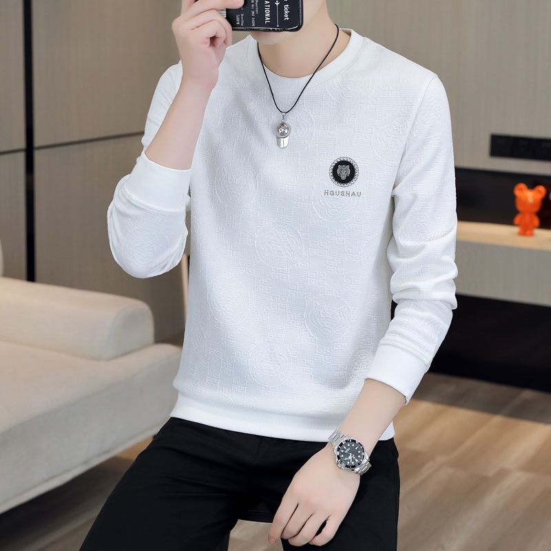 男性服のファッション2023年と秋の新商品のファッションカジュアルな白い長袖tシャツに丸襟の秋の服を合わせます。