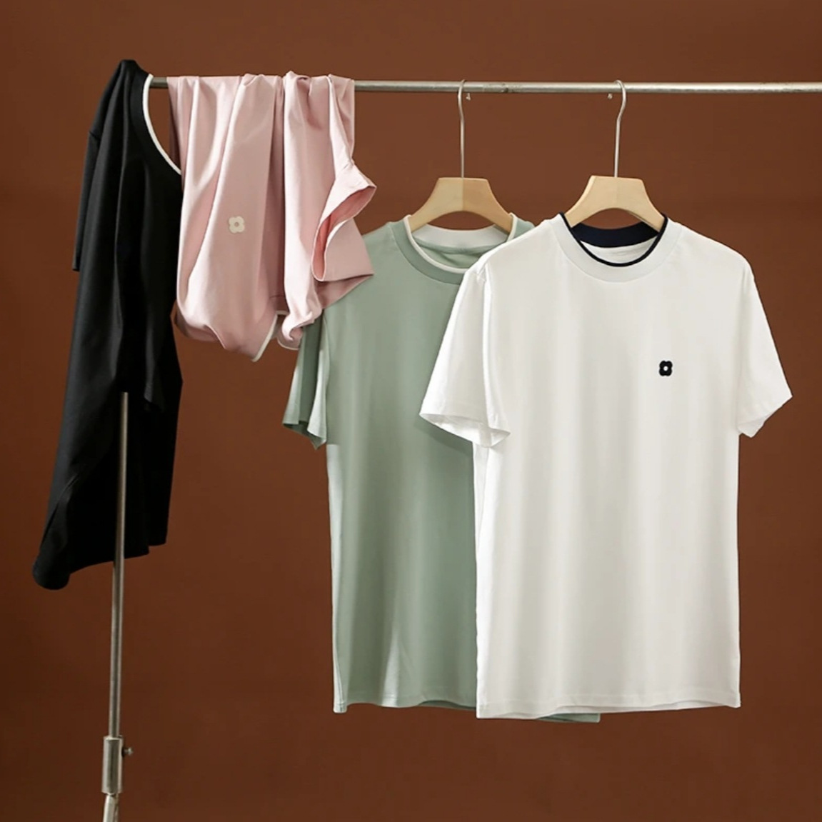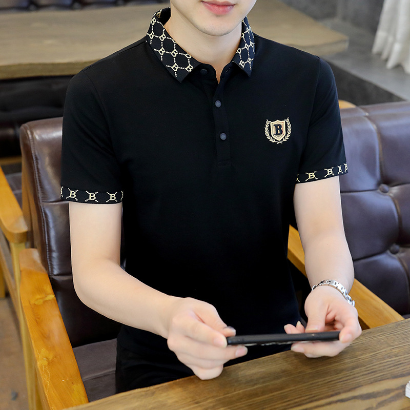 2023夏の新型男性ファッション高級定zタイプ衝突色ねじ襟元軽贅沢風半袖tシャツ男