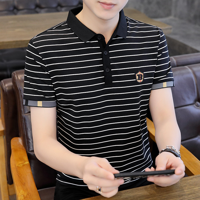 刺繍半袖tシャツ男2022夏新作メンズカジュアル襟折りtシャツ韓国風ファッションストライプポロシャツ