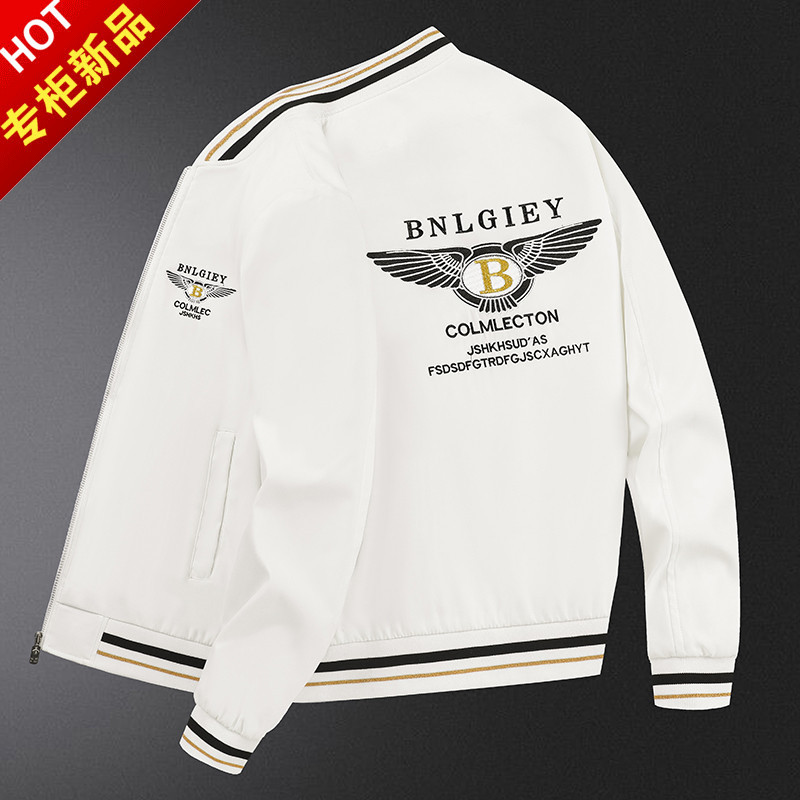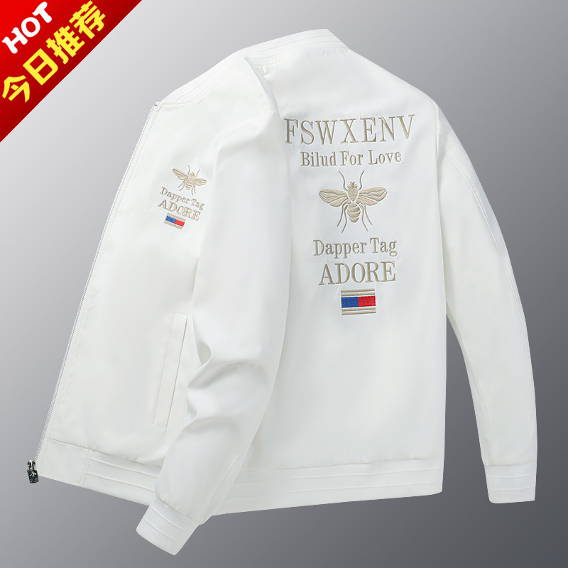 トレンドブランドの白い小さな蜂刺繍入りジャケット メンズ 秋 カジュアル 韓国風 ヨーロッパ風 大きいサイズ ジャケット スリムフィット