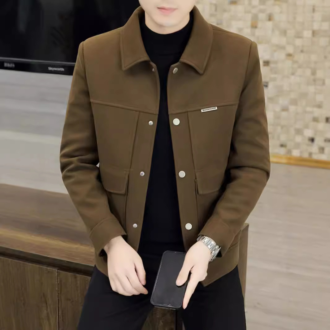 男性ジャケット秋冬の韓国版のトレンドは、カジュアルなラシャを襟にして、短いスタイルのコートを厚くします。
