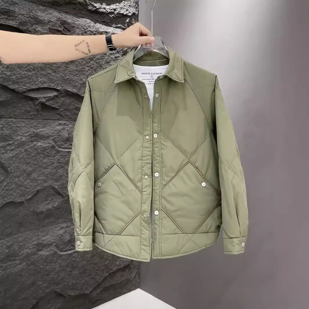 薄手ダウンジャケット男2024冬の新型高級ハンサムな菱形格襟ジャケット保温カジュアルコート男