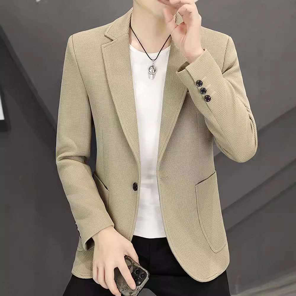 春秋ワッフルカジュアルスーツ男性ファッション青年韓国版修身単西メンズ高級感小スーツコート