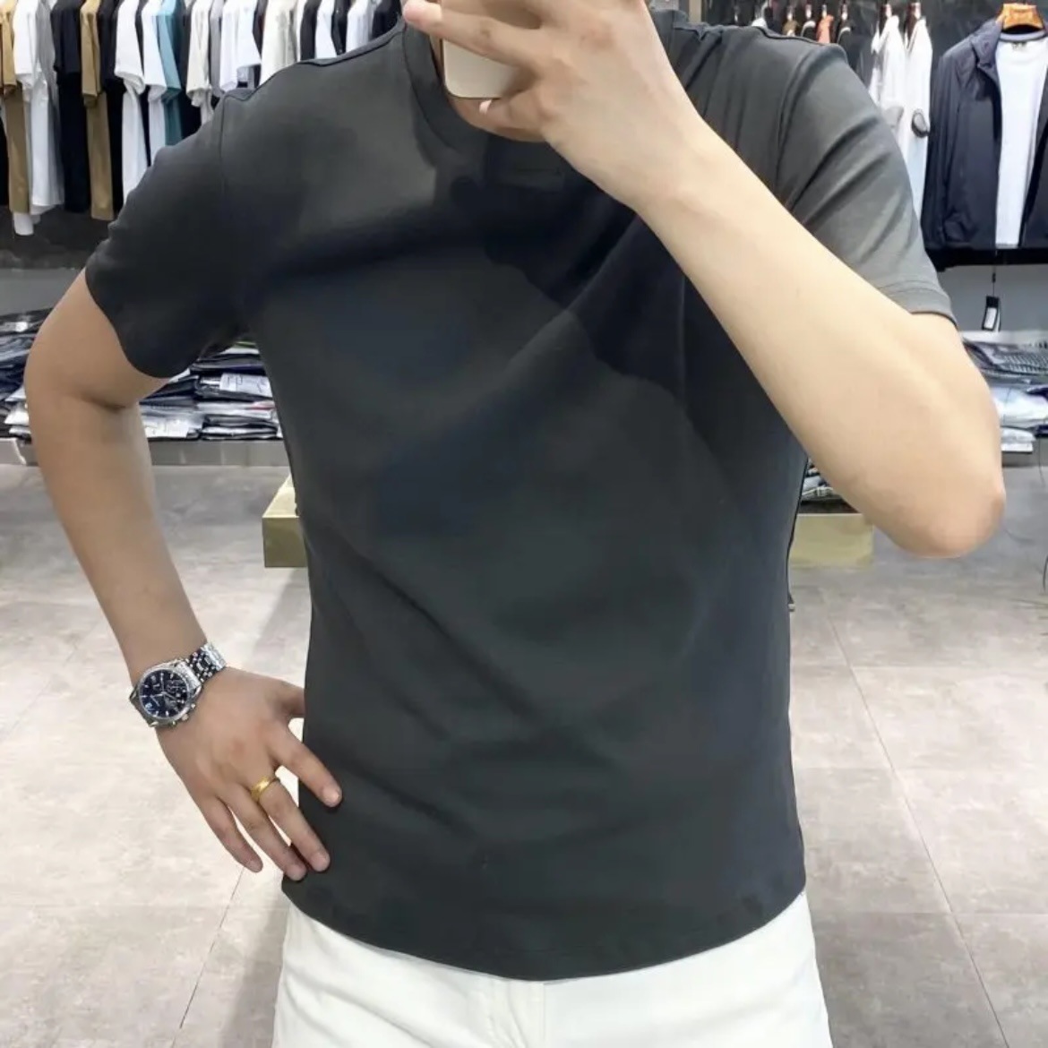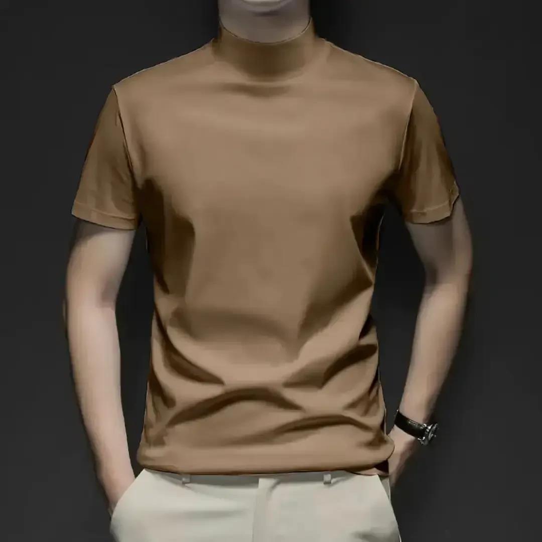 【コーナー品質】2025半高襟半袖tシャツ男性ソフトシルク滑りスリム純色中襟インナーアンダー