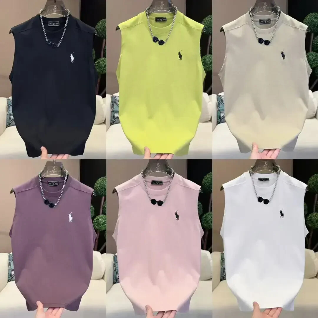夏の新しいトレンディな馬刺繍ノースリーブベスト Tシャツメンズソリッドライト高級ファッションベストボトリングシャツトップ
