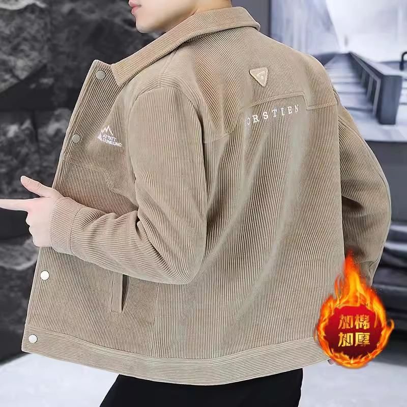 男性のラシャのコートは秋冬のファッションの工装のコーデュロイとベルベットの厚いジャケットのファッションの保温綿の服の冬の服です。