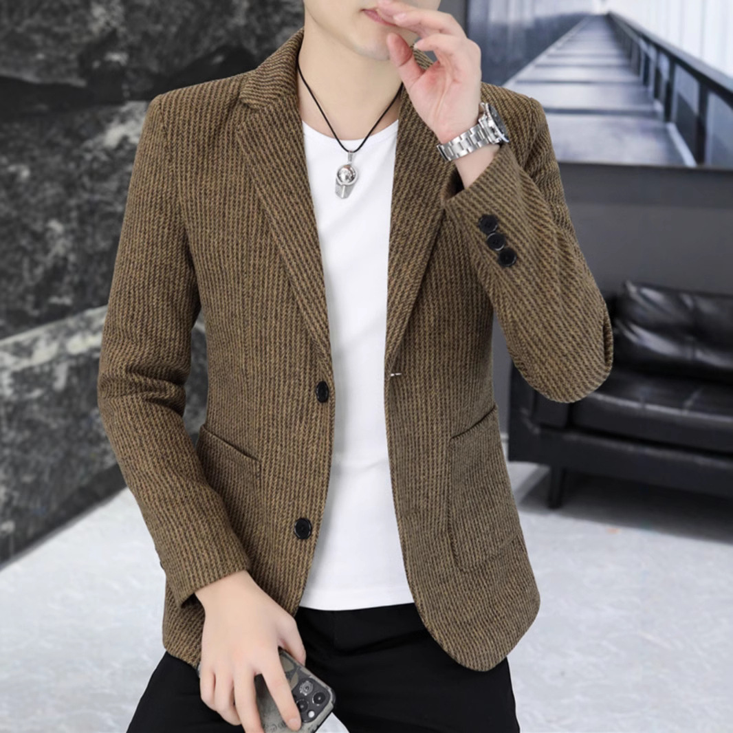 2024秋の新しい襟付きジャケット男性カジュアル軽ビジネス行政コートファッション格好いい服が流行している