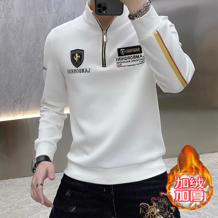 ヨーロッパ駅高襟衛衣立襟男秋冬カジュアル半ファスナーとベルベットの厚いtシャツ男底シャツ保温