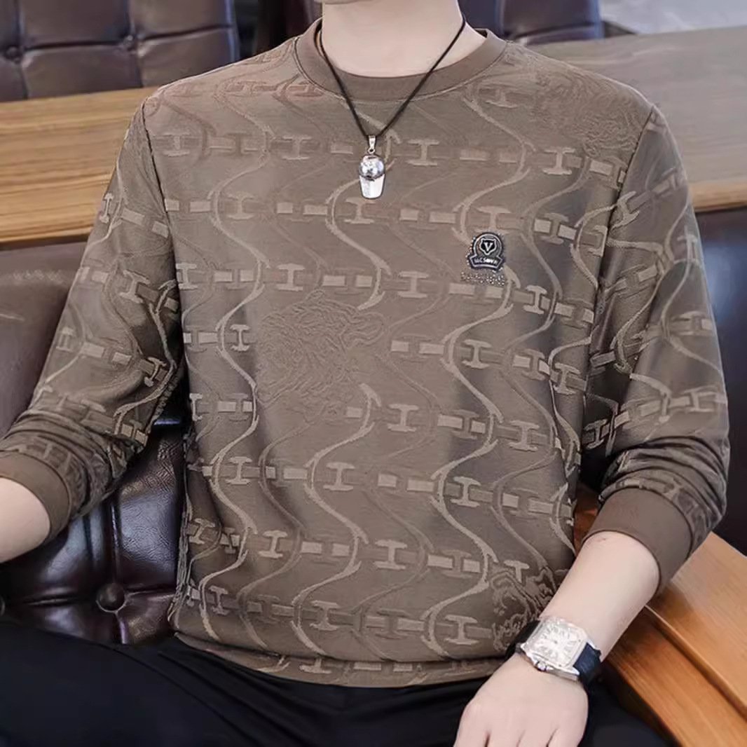 丸首の衛衣の男性の2024秋冬の金のベルベットの高品質の潮流とベルベットの厚い長袖のtシャツの底のシャツ