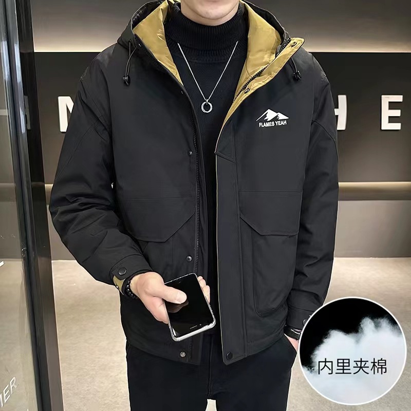 二綿工装ジャケット男2023秋冬新作男性ファッション百合ゆるいプリント綿服と綿コート男