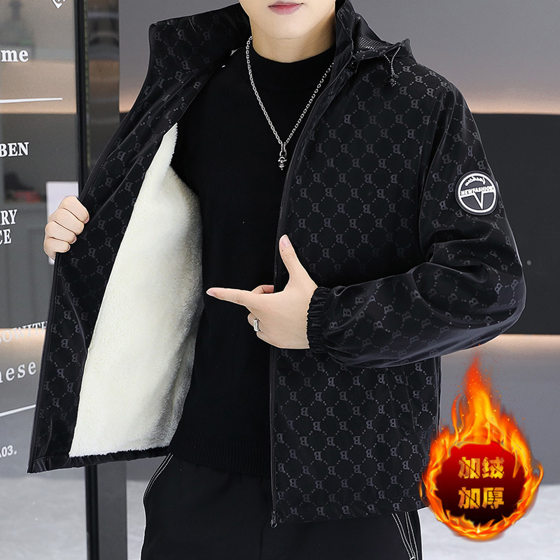 コート男秋冬2023新型ベルベットのファッションが格好いいカジュアルなジャケット服青年男性服