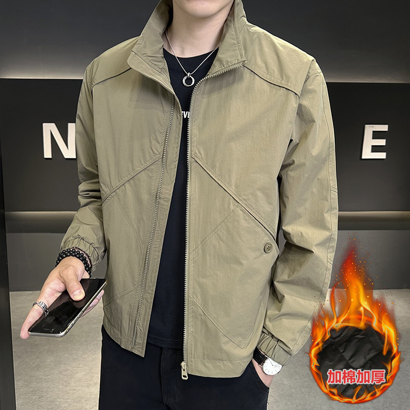工装コート男春秋2024新ファッションカジュアル立襟綿ジャケット男性冬服綿上着服