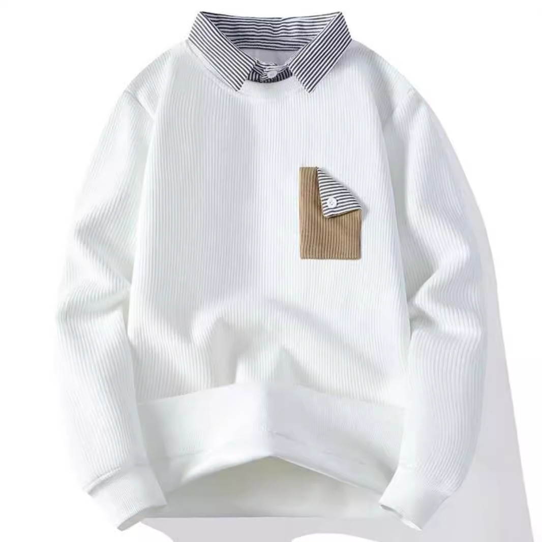2024新型秋冬タイプの偽2枚のガーディアン男のゆるいファッションシャツの襟の中にシャツの長袖tシャツの男を着ている