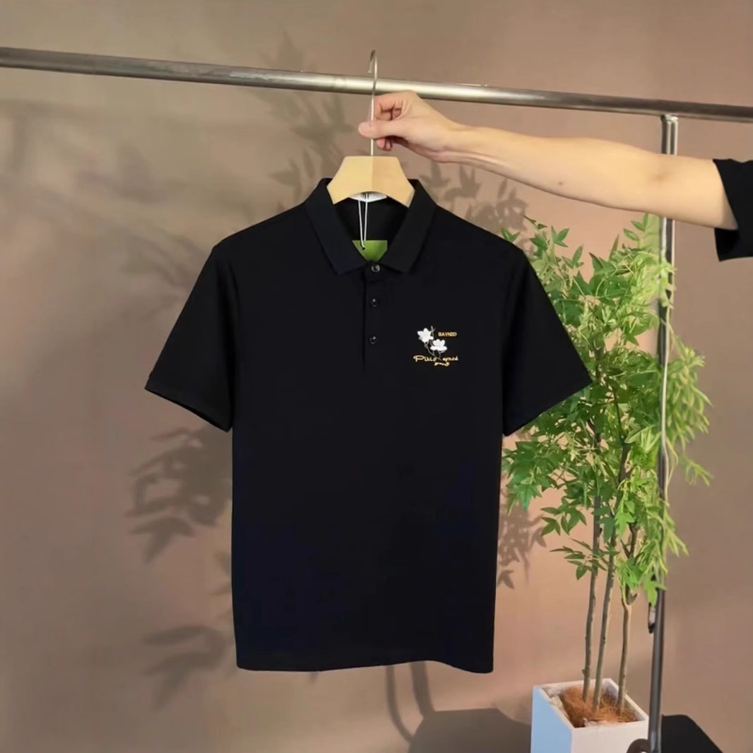 夏の軽豪華刺繍半袖poloシャツ男性修身カジュアルビジネス