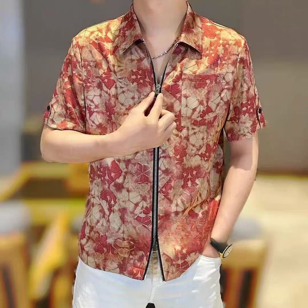 2025夏の新型半袖シャツのファッションは、男性のシャツとシルクのカジュアルなシャツの男性に合わせています。