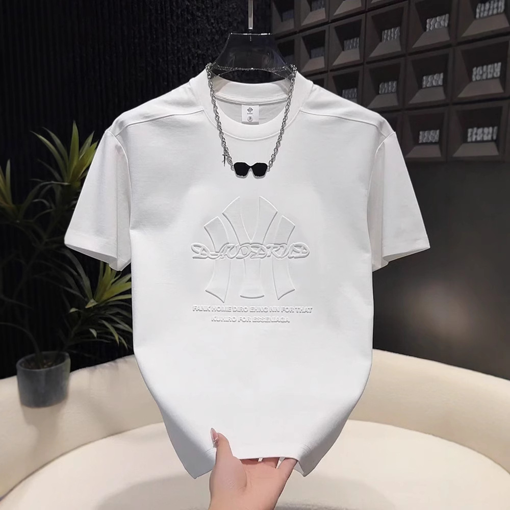 2025新型シンプルなデザイン感プリント文字半袖tシャツ男性気質かっこいい贅沢な丸襟高品質