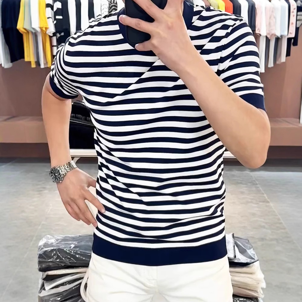 【カウンター品質】メンズサマートップス、色褪せないストライプ半袖トレンドシャツ、スリムカジュアルシャツ、万能