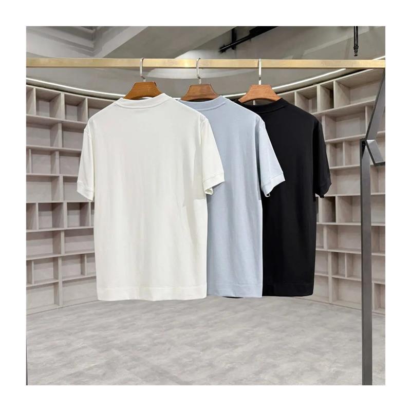 2025 ライト高級半袖 Tシャツメンズ夏アイスシルク速乾性トレンディなデザインプリントラウンドネック Tシャツハンサムトップ