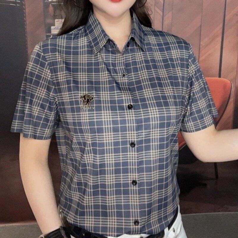 男性夏氷糸半袖シャツ高級欧品格子縞半袖抗シワシャツビジネスシャツ寸衣