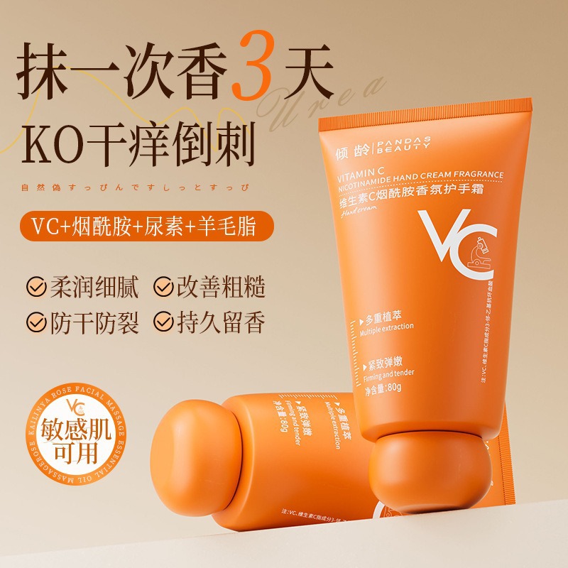 傾斜年齢ビタミンVCニコチン酸アミドアロマハンドクリームの柔らかい白い肌は、ざらざらした潤いを改善し、ひび割れを防ぐ