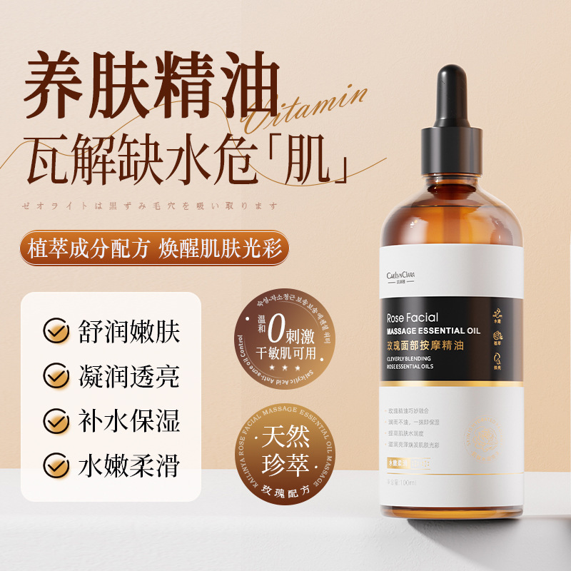カイリンヤ ローズ フェイシャル マッサージ エッセンシャル オイルは、潤いを与え、しわを防ぎ、保湿し、くすんだ肌を改善し、肌に潤いを与え、明るくします。