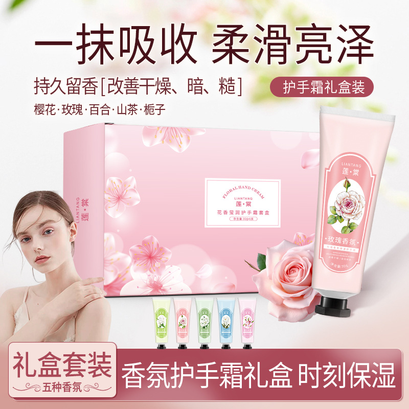 蓮棠の花の香りがきらきらと潤っているハンドクリームセットの秋冬保湿補水の花の香りのハンドクリームは携帯しやすいです。