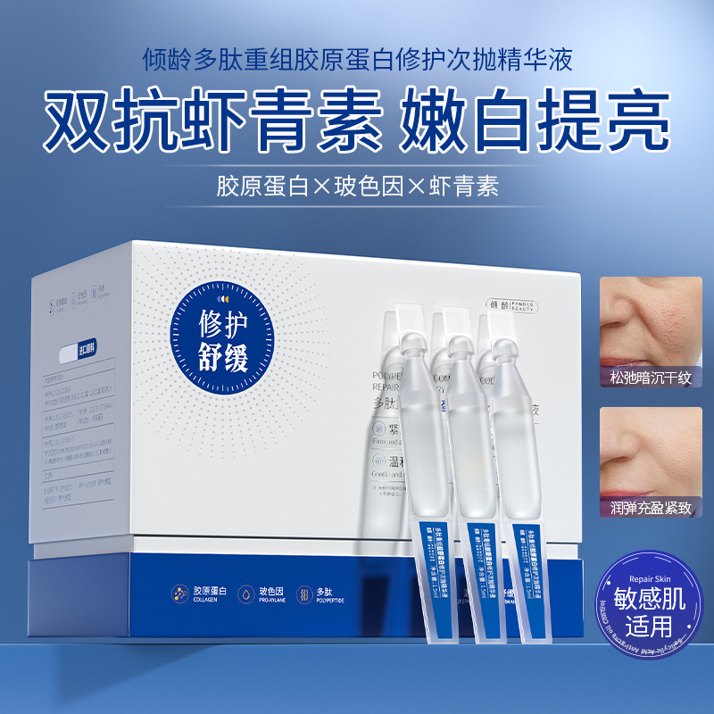 傾斜年齢のポリペプチドはコラーゲンを再編成して、次の精華液を投げて、水を補って保湿して、肌の色の精華液を明るくします。