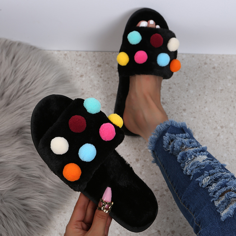 外国貿易の大きいサイズの女性の靴の丸い点の1字の毛の毛の毛は女性の2021年の秋冬の保温の家庭を引きずって女性の靴を引き延ばして代行します。