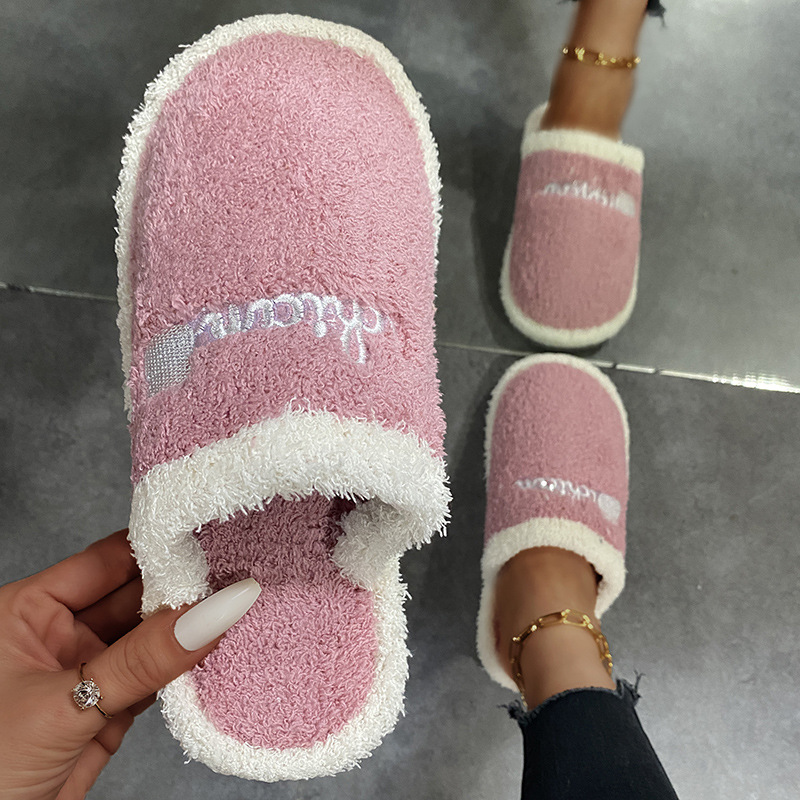 毛のスリッパの女性の秋冬の新型のファッションのアルファベットの1字は家のぬいぐるみの木の床を引きずって保温の綿を引きずって大きいサイズを引き延ばします。