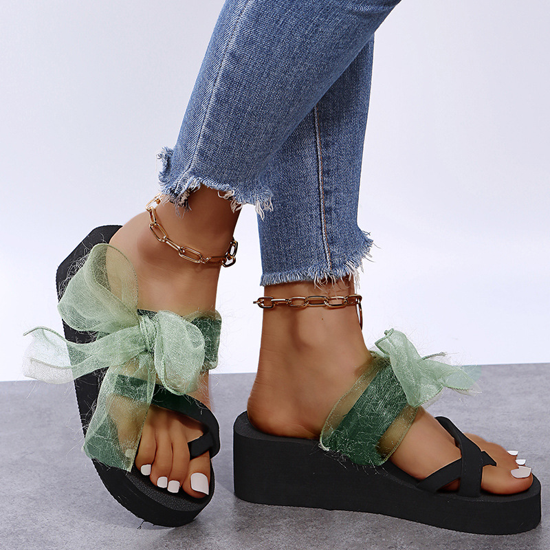 現物wish2022夏の新型欧米の対外貿易の蝶結びの厚い底の大きいサイズの1字の砂浜のサンダル