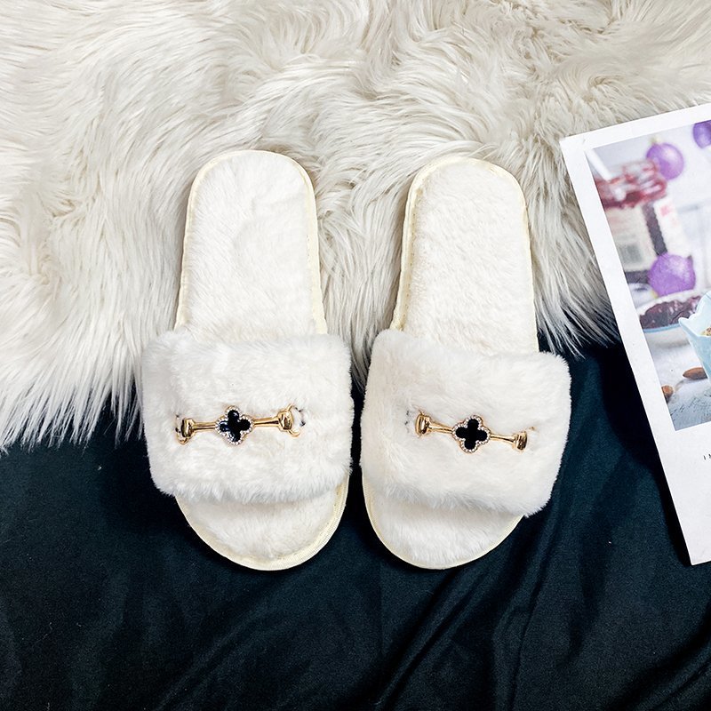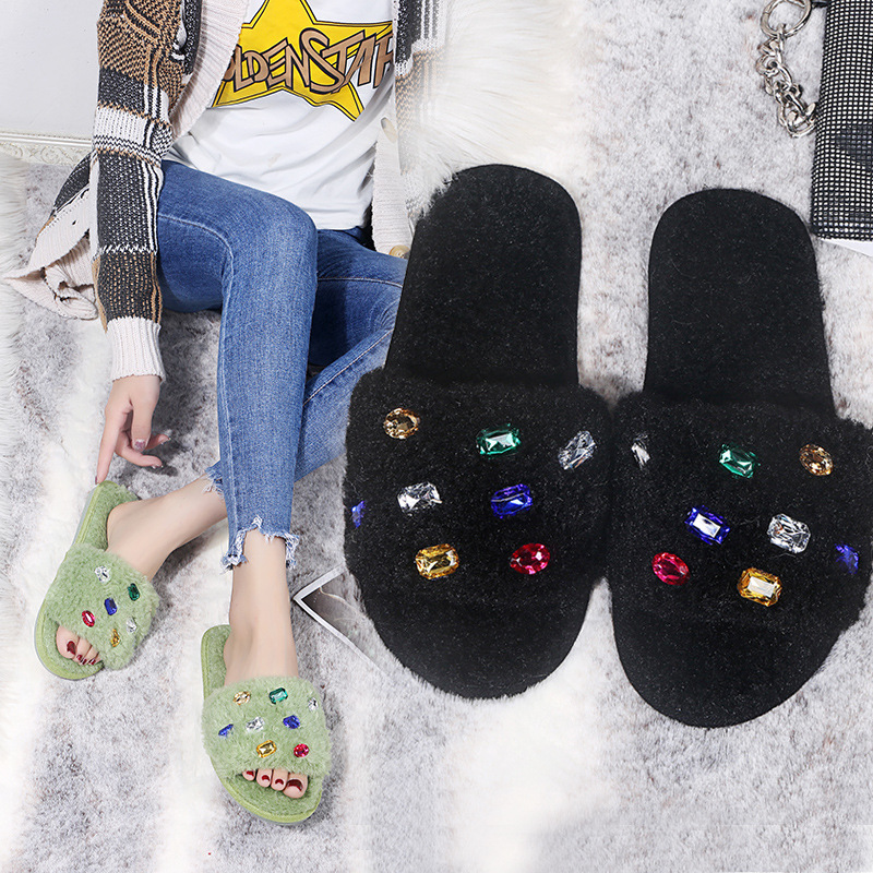 毛のスリッパの女性2021秋冬の新型の韓国版のファッションの外は1字の平とハート型のドリルの毛のスリッパを着ます。