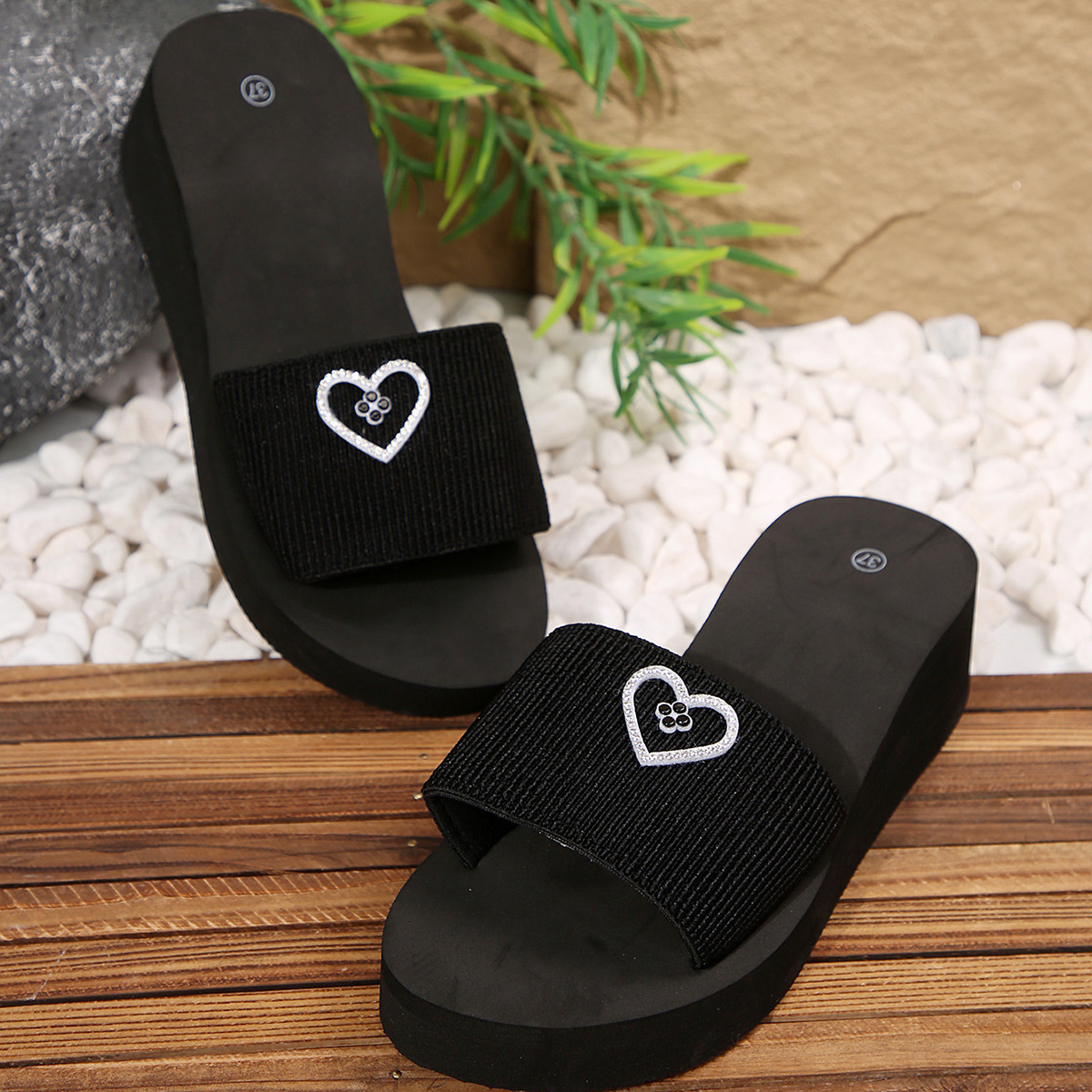 クロスボーダー大きいサイズウェッジスリッパ女性用 2025 新しい対外貿易ワンラインパールバタフライサンダルオープニングピーチハートスリッパ