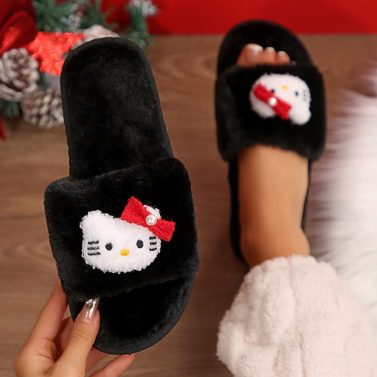 クロスボーダーの大きいサイズの秋冬の床はかわいい猫の漫画のぬいぐるみの家の綿のスリッパの女性の1字の毛のスリッパを引っ張ります。