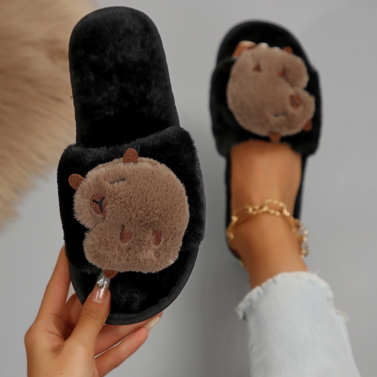 カピバラ特大サイズスリッパ2025秋冬新作綿スリッパ女性用可愛い漫画風室内外兼用スリッパ