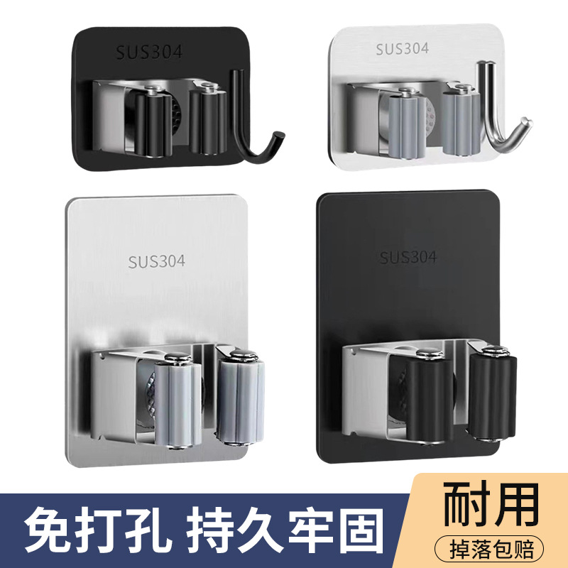 トイレ収納モップクリップ穴なしモップフック付き便利フックステンレス強力フック壁掛け式