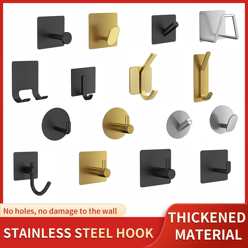クロスボーダーシングルフック 304 ステンレス鋼のバスルームパンチフリー自己粘着両面テープドア後ろの金属コートフック卸売