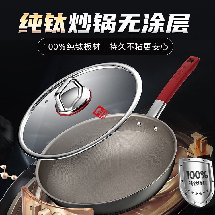 康巴.赫纯钛锅KGT-C32A无涂层钛不粘炒锅家用电磁炉燃气灶