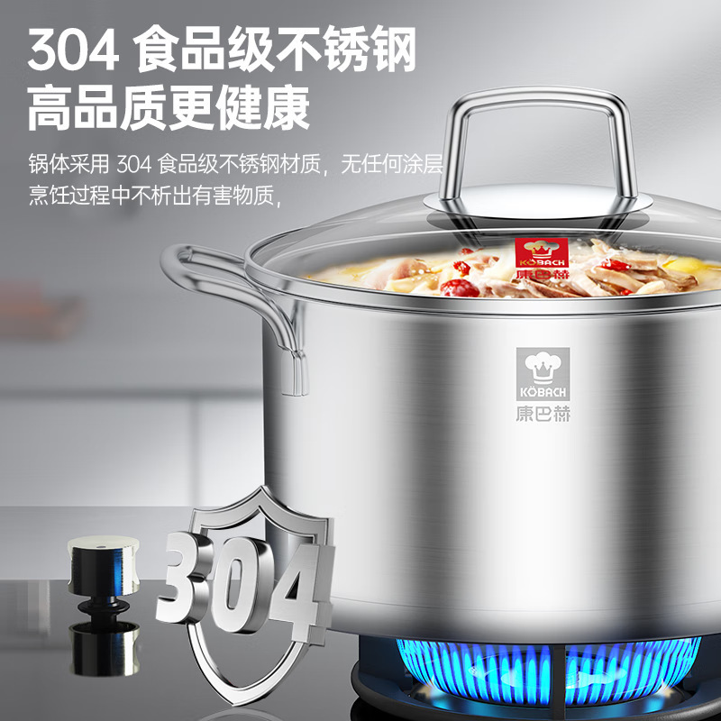 康巴.赫欧式汤锅304不锈钢炖锅煮锅22cm加厚复底汤锅 KGO-T22E